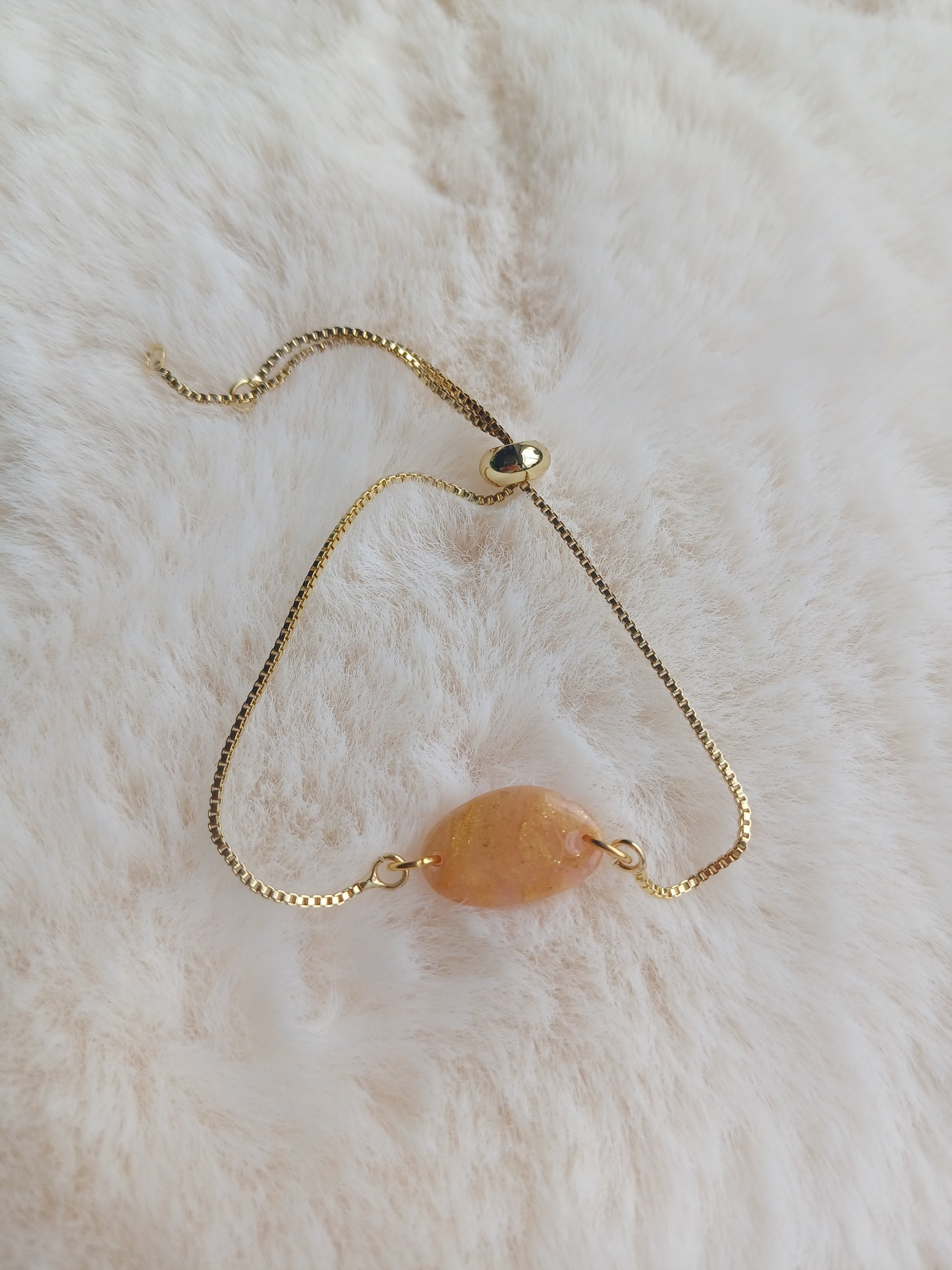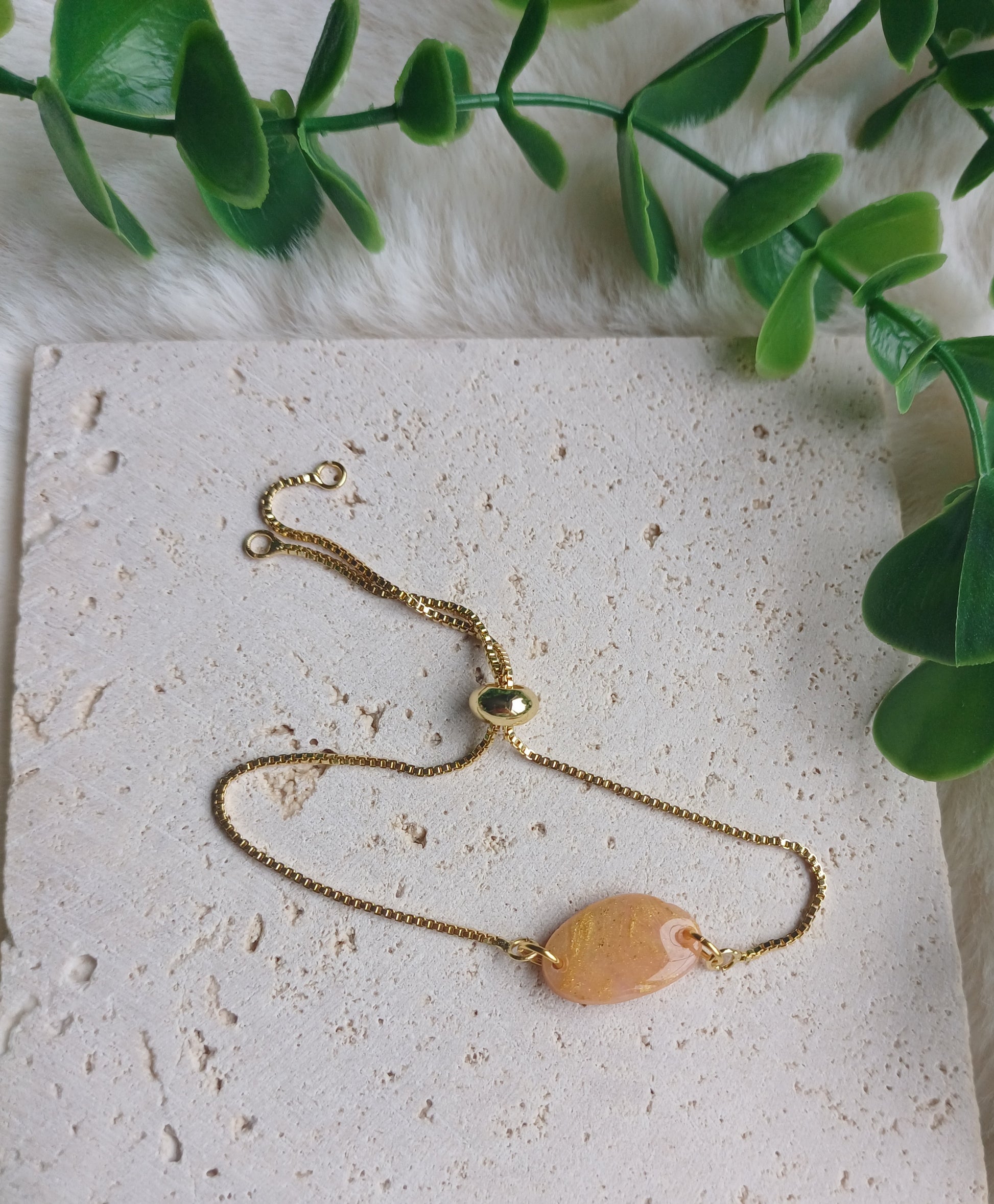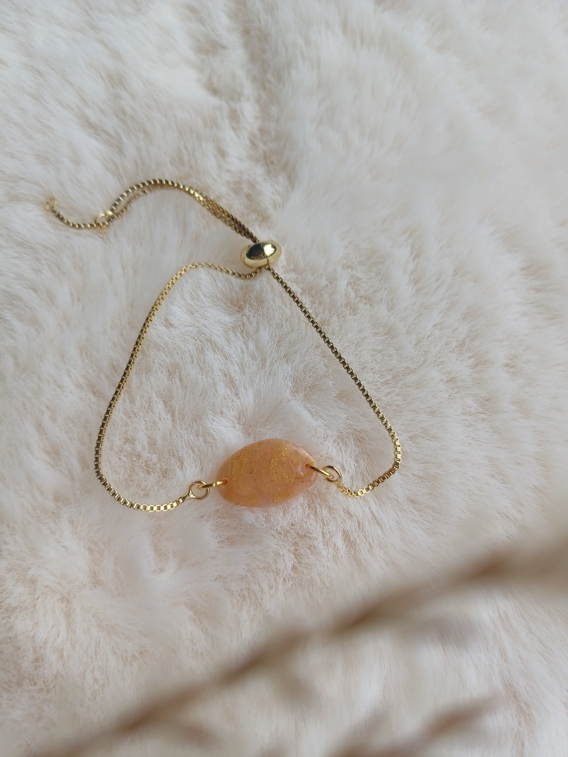 Een faux-stone armband die bijna op een echt edelsteentje lijkt. Heel minimalistisch en vrouwelijk.