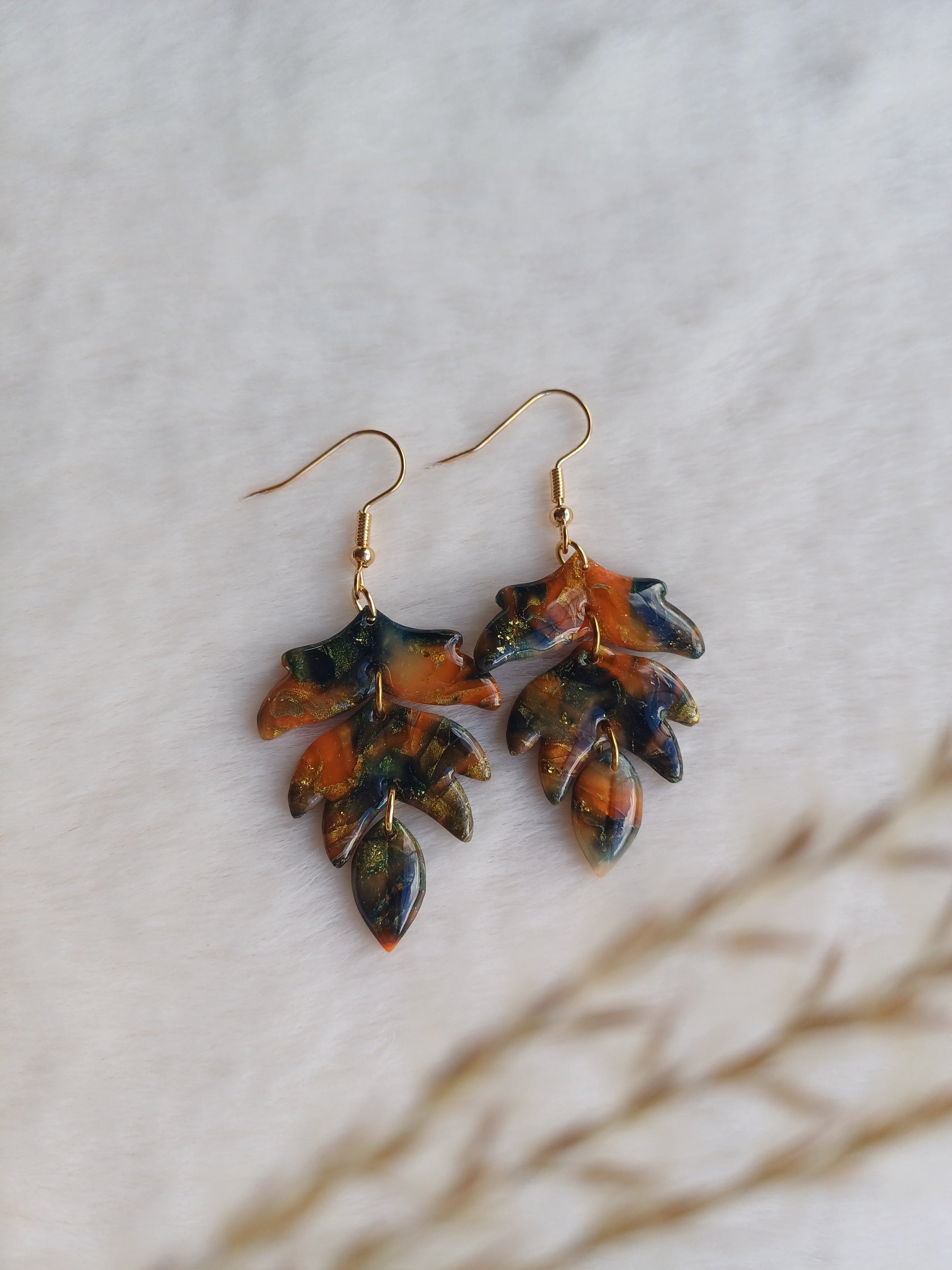 Een van de nieuwste modellen die overeenkomt met een blaadje. Deze was heel passend bij deze prachtige kleuren! Een statement oorbel die zeker opvalt, die zowel een vrouwelijke uitstraling als iets stoers heeft.