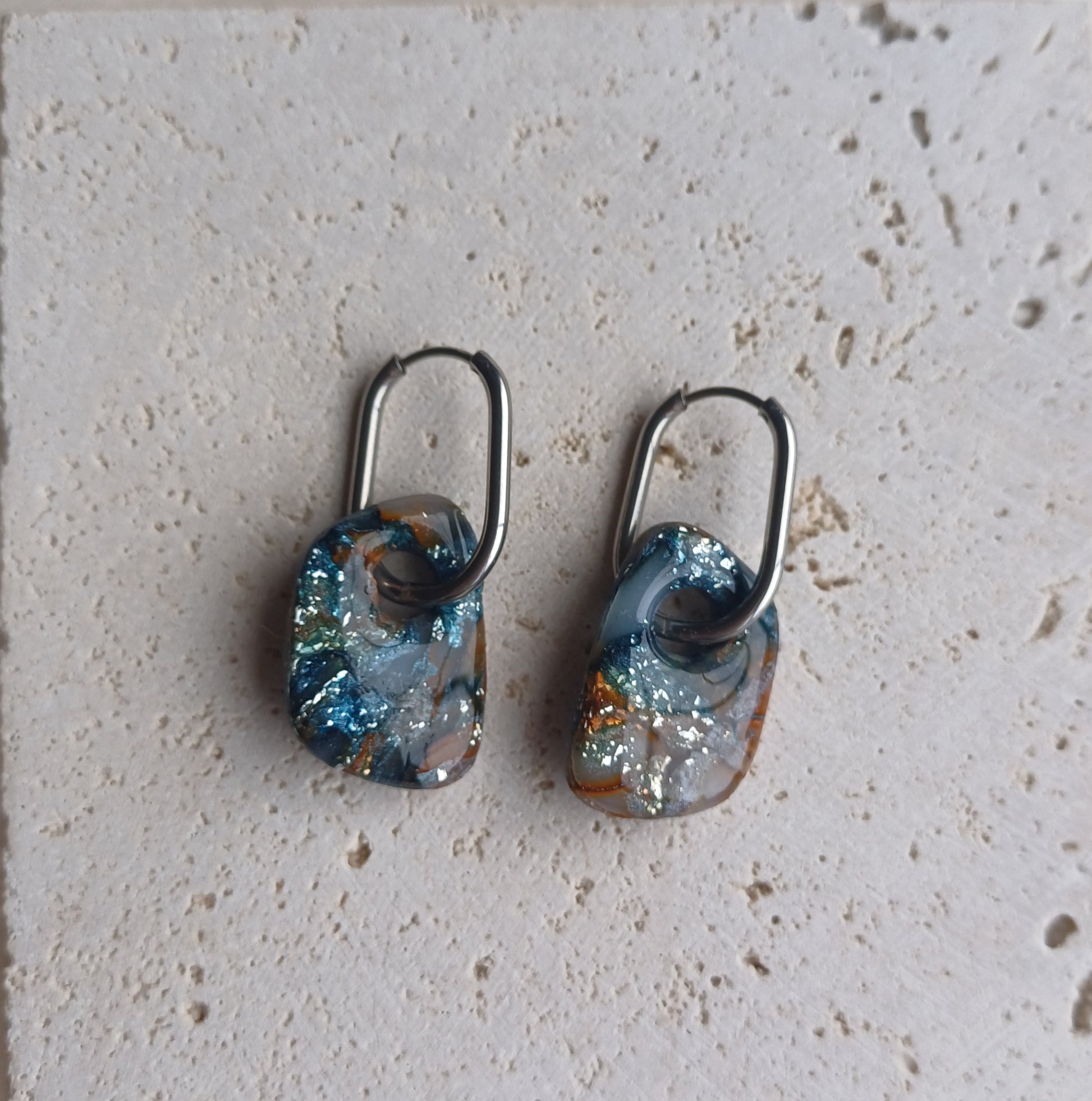 Afgewerkt met een nikkelvrije hoop, de kleistukjes werden van een glanslaag voorzien.