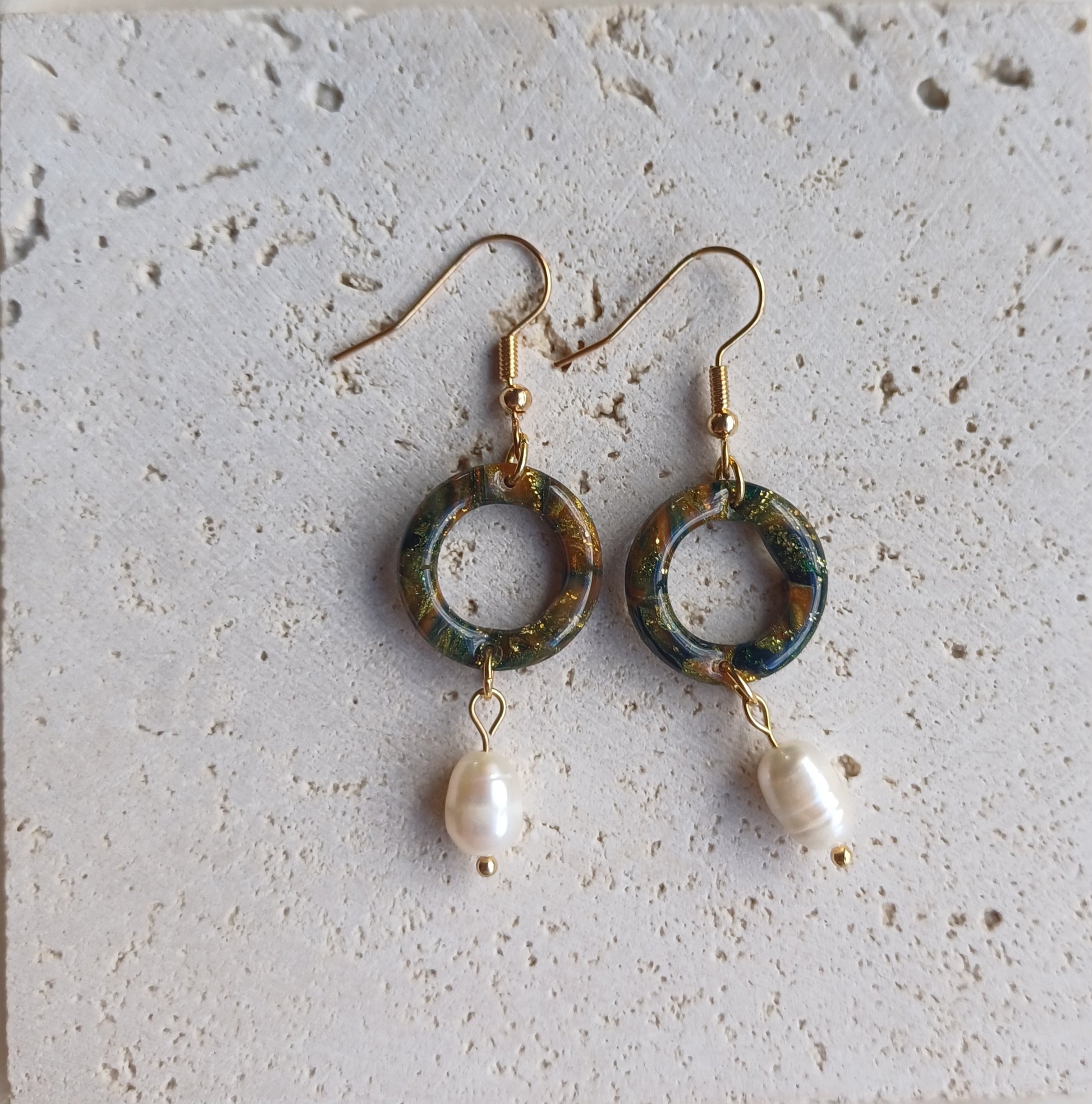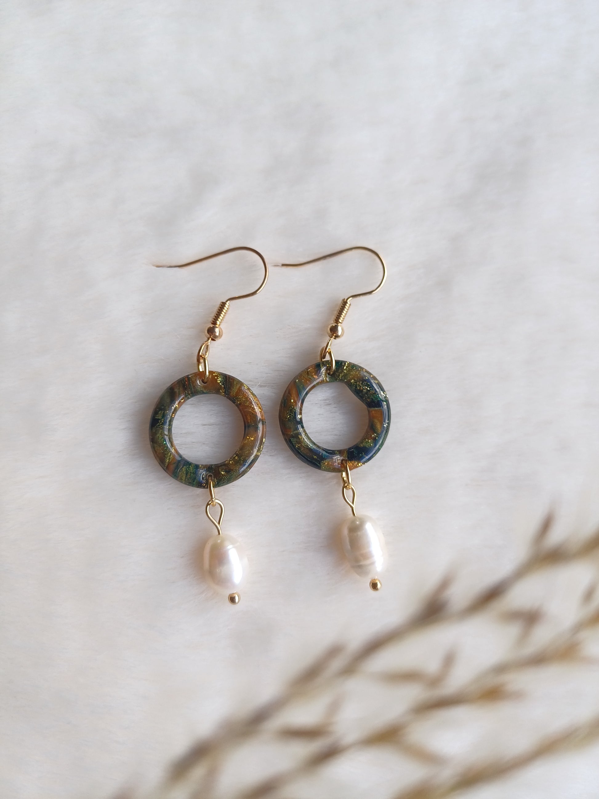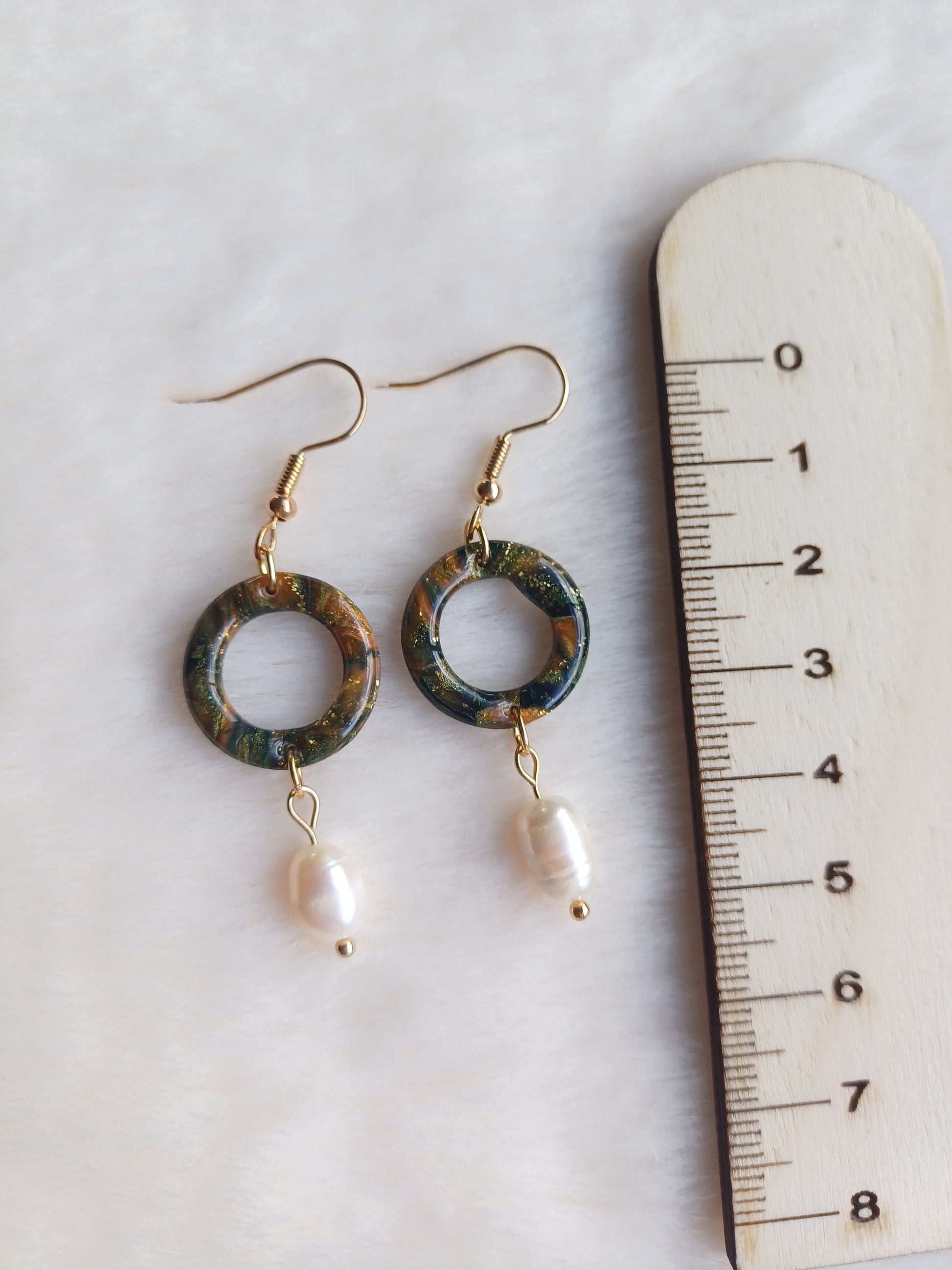 Afgewerkt met een nikkelvrij haakje. De kleistukjes werden voorzien van een glanslaag. Combinatie met zoetwaterparel zorgt voor een zuiverende werking van zowel lichaam als geest. Werkt in op je stress en helpt dit te doen zakken, ook helpen ze negatieve emoties te doen temperen.