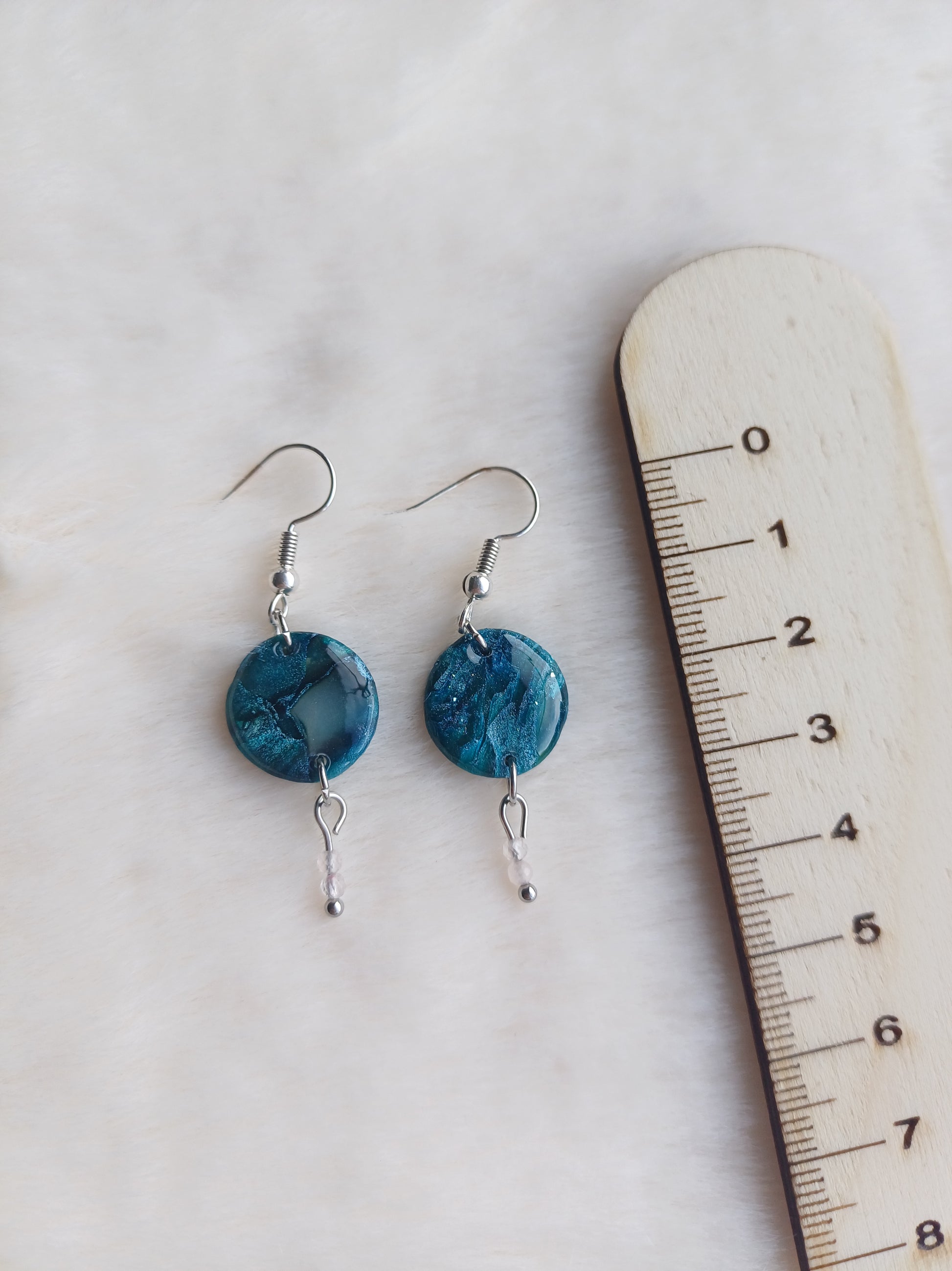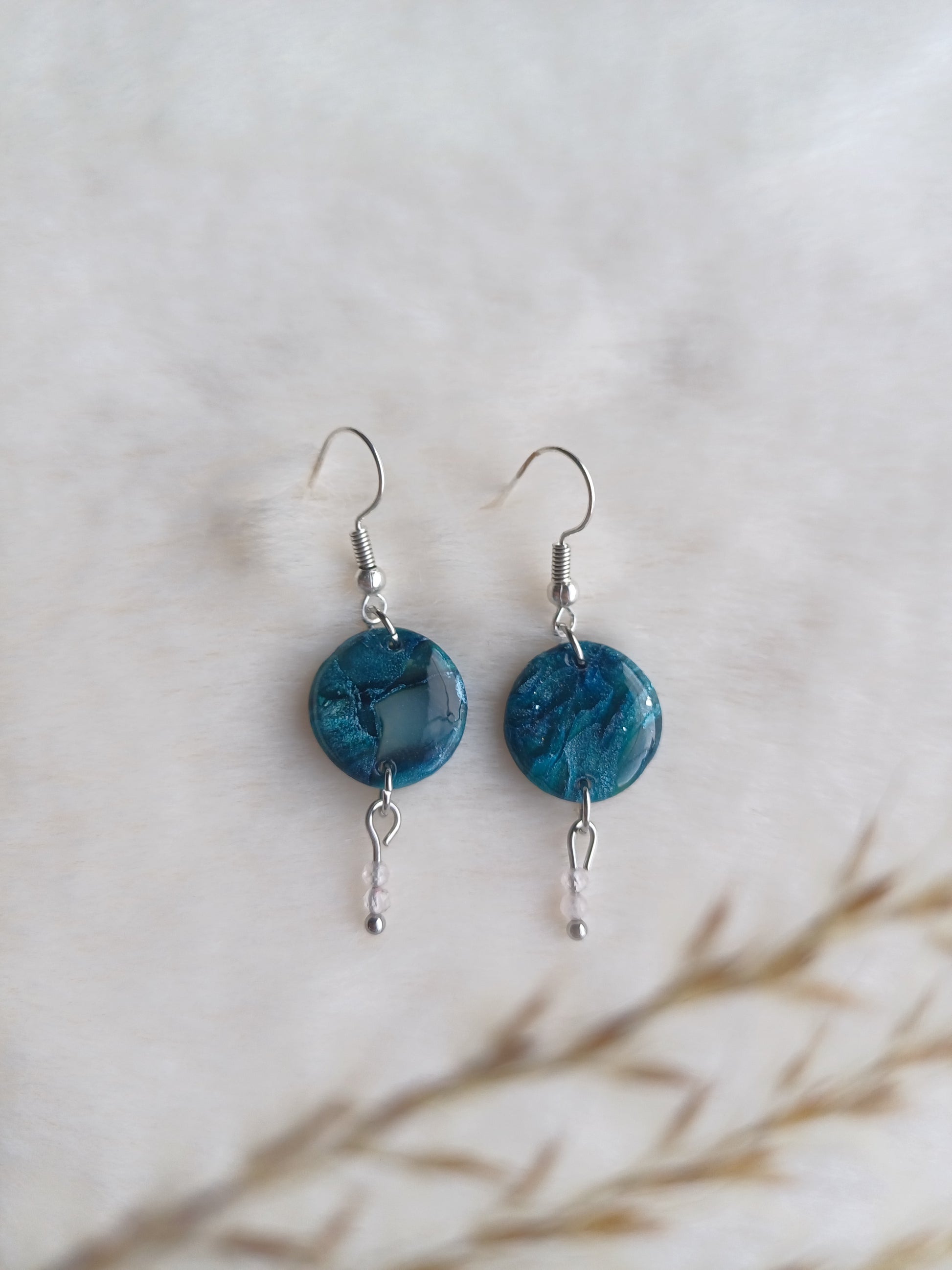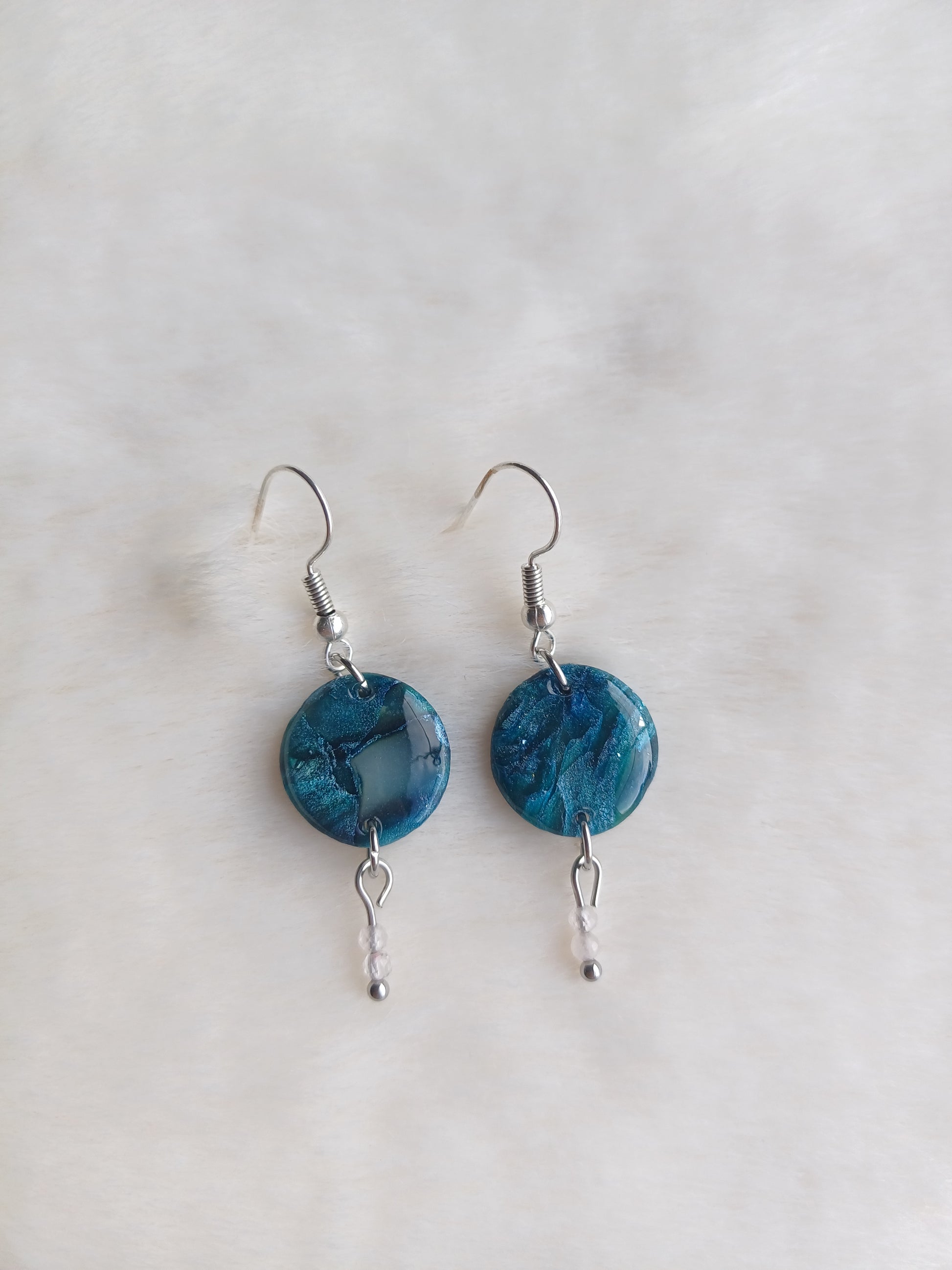 Afgewerkt met een nikkelvrij oorhaakje en een glanslaag op de kleistukjes. De steentjes zijn bergkristal en deze hebben een zuiverende werking. Ze zorgen voor een energetische balans en helpen negatieve energie te doen verminderen. Bergkristal heeft een positief effect op de concentratie en intuïtie.