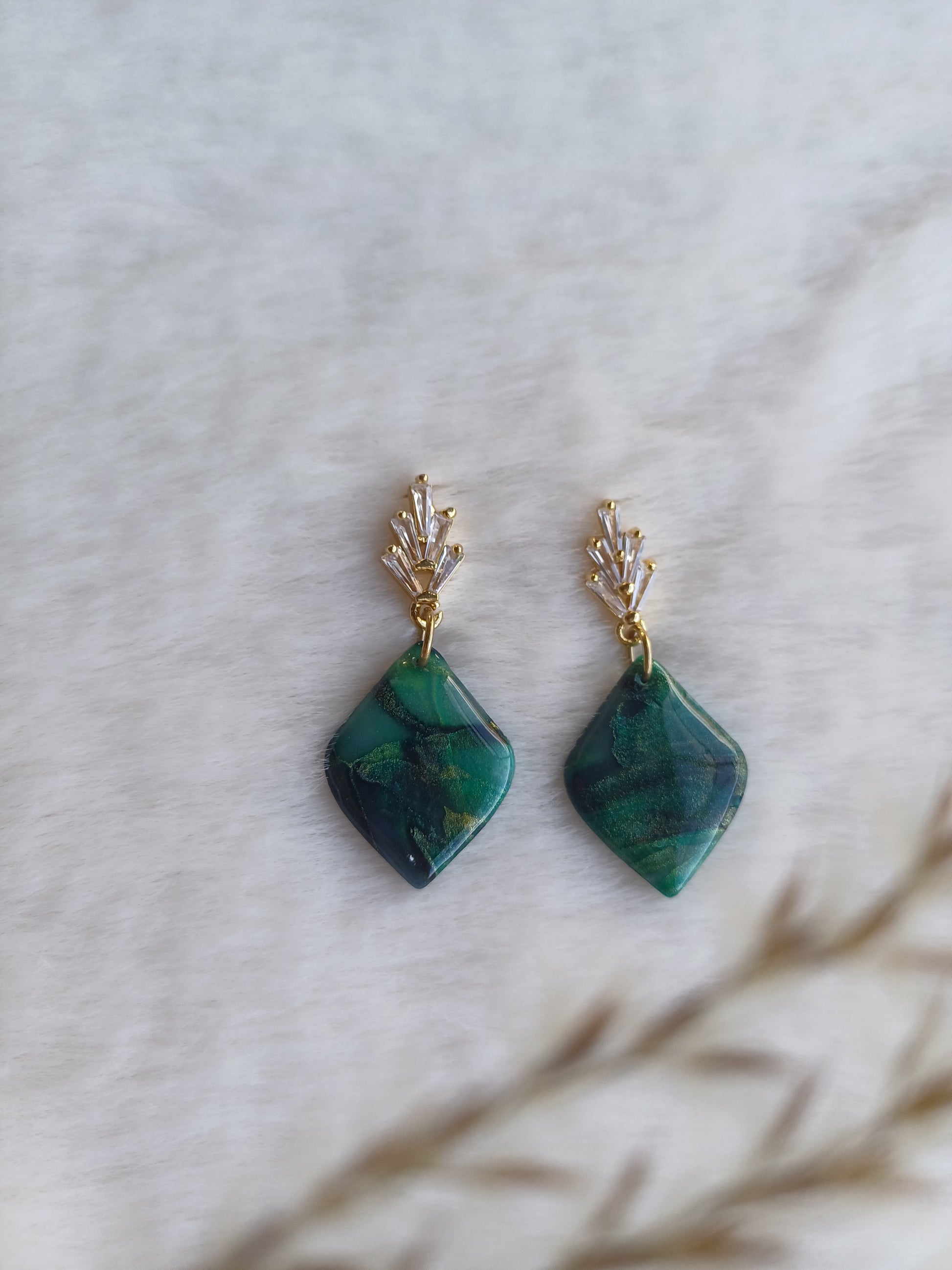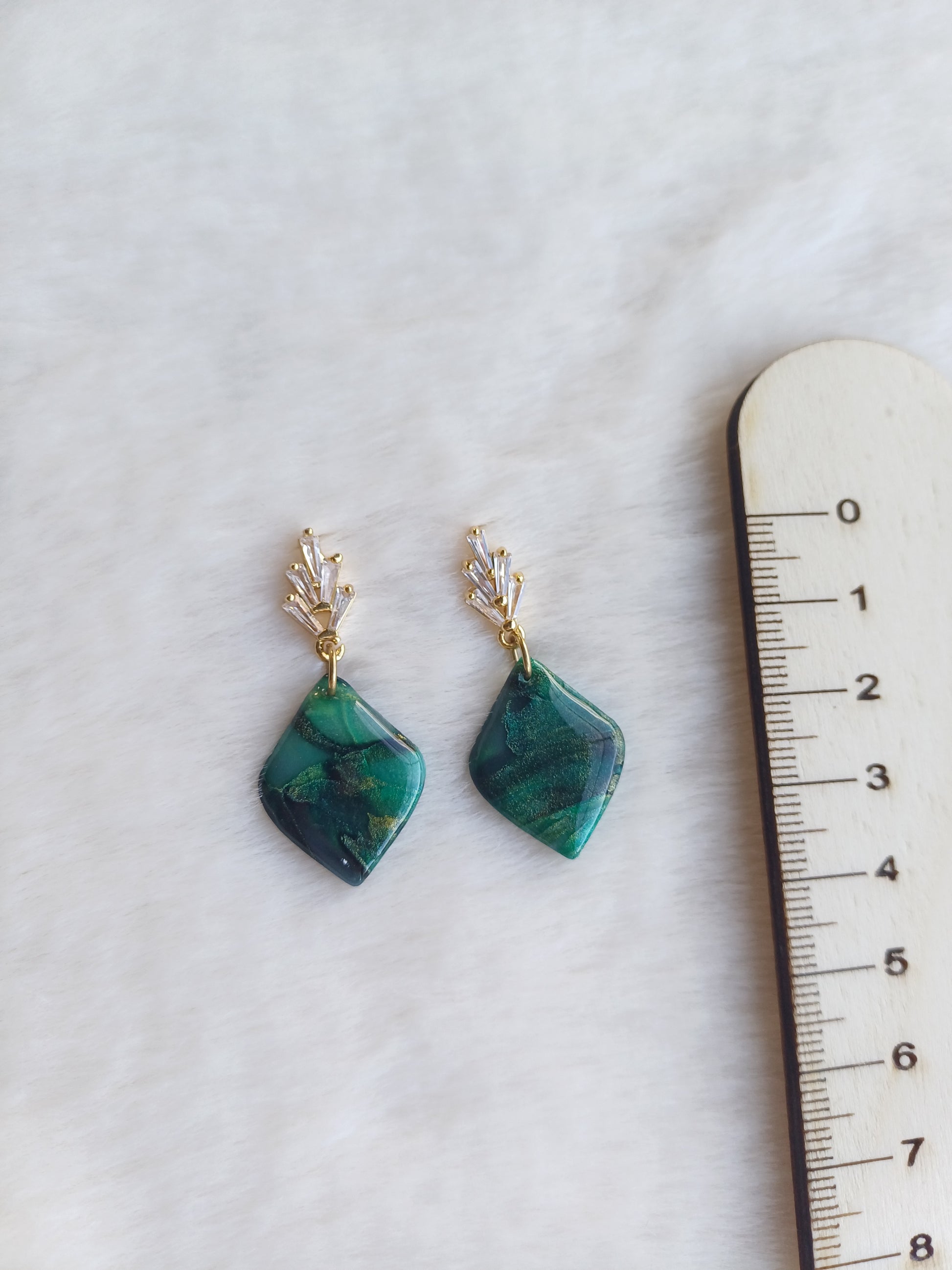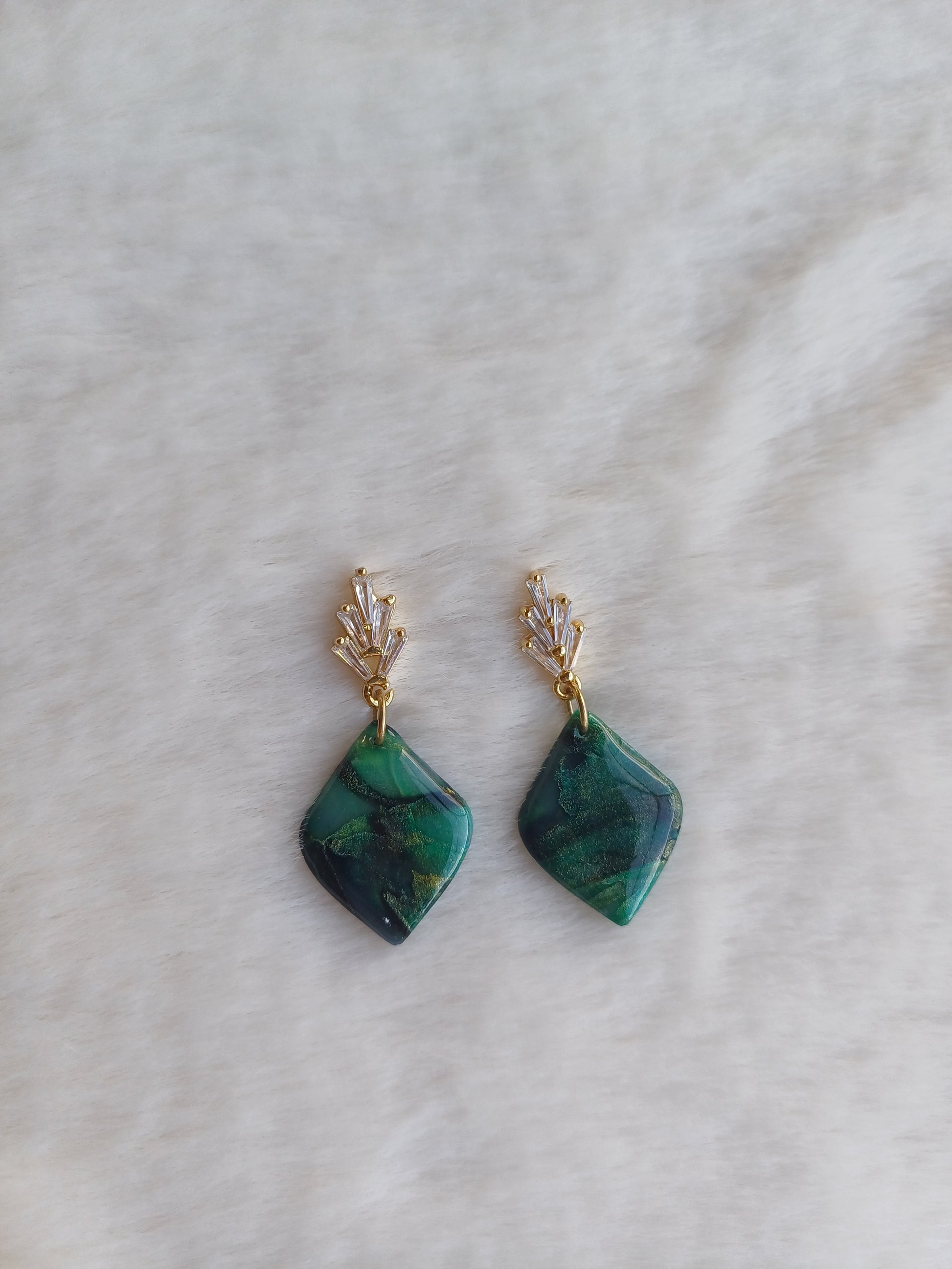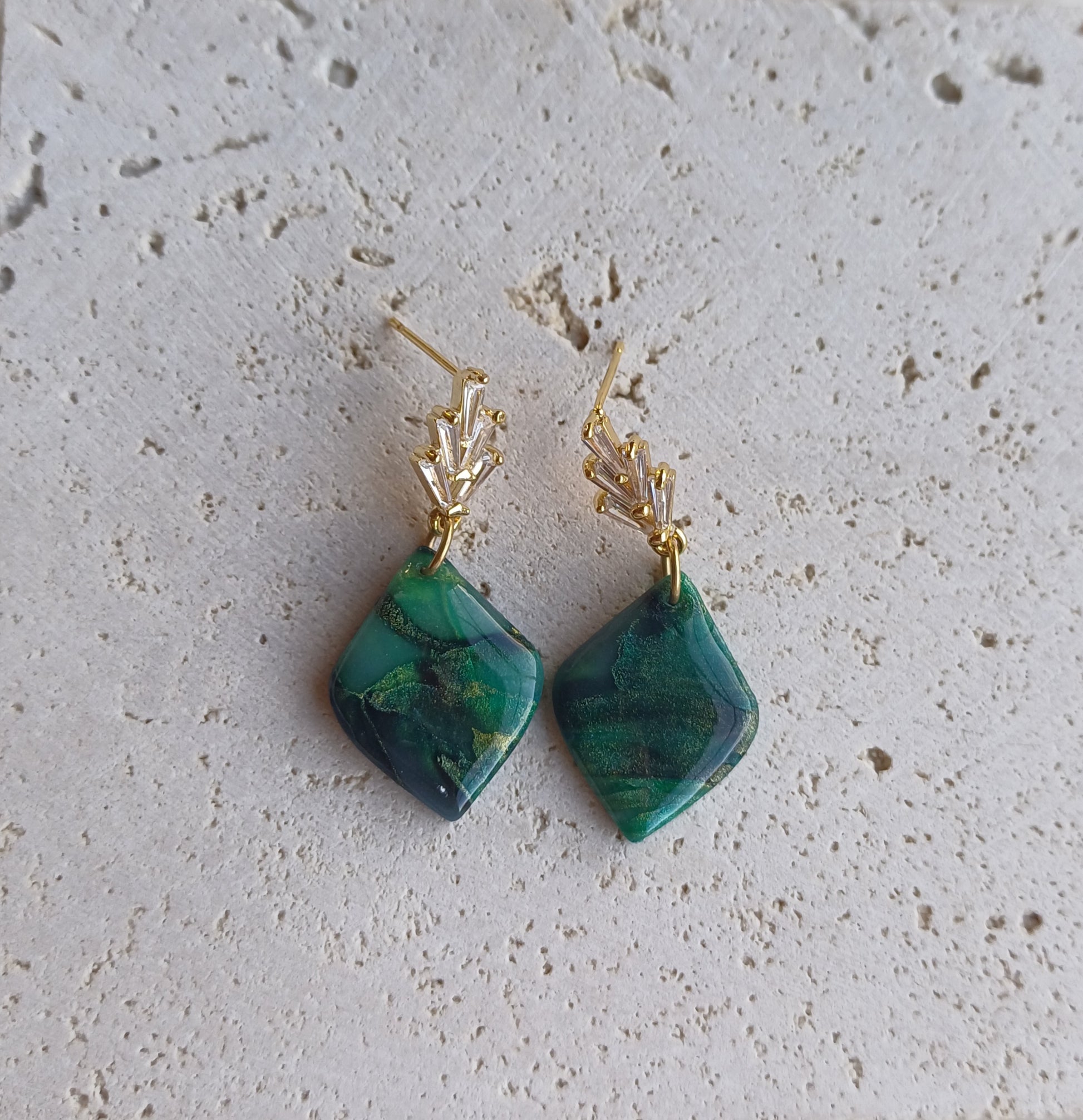 Afgewerkt met een steker met zirkonia steentjes, deze is voorzien van een laagje 18k verguld goud. De kleistukjes zijn voorzien van een glanslaag.