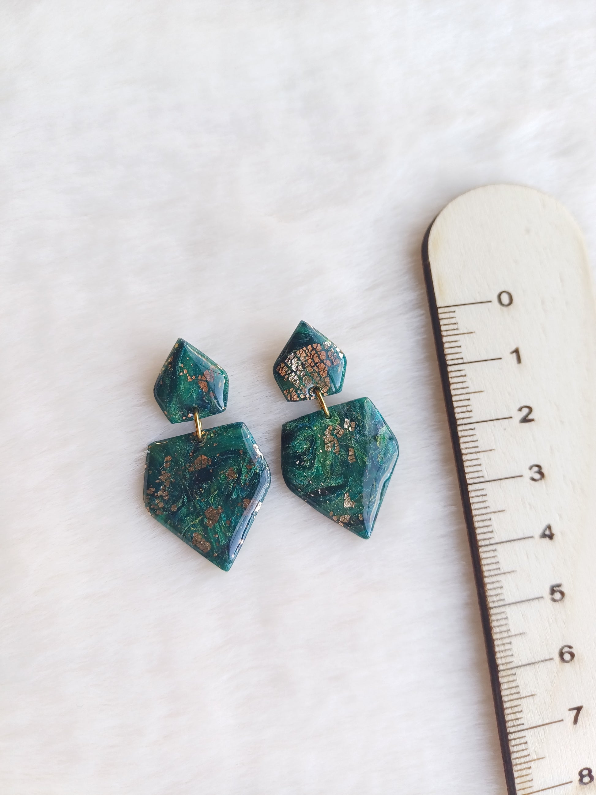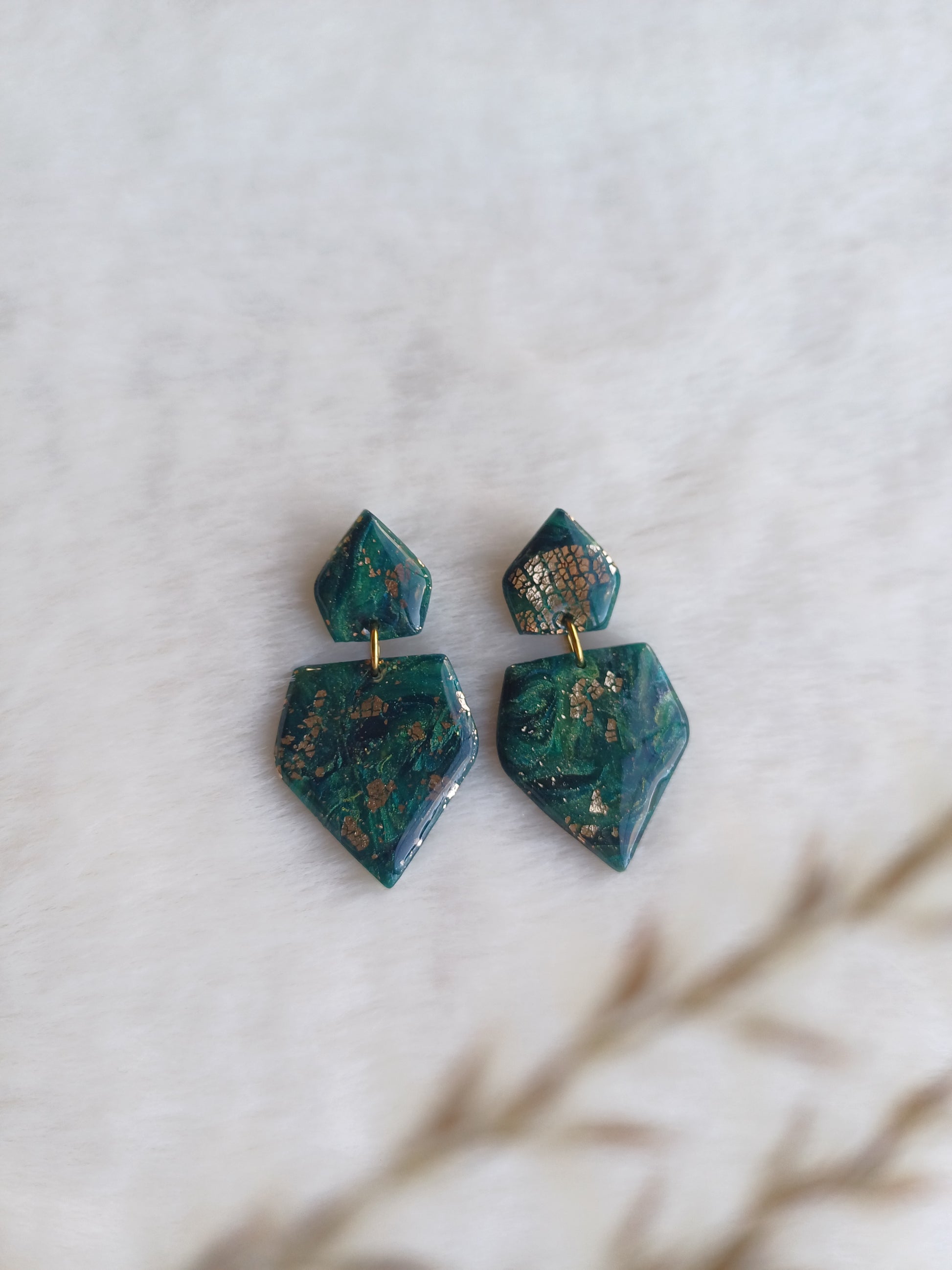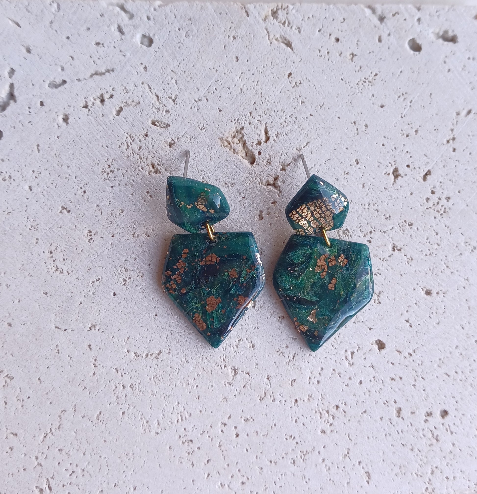 Afgewerkt met een titanium steker, het kleistukje werd voorzien van een glanslaag zodat de kleuren dieper uitkomen en het bladgoud dezelfde kleur behoudt.
