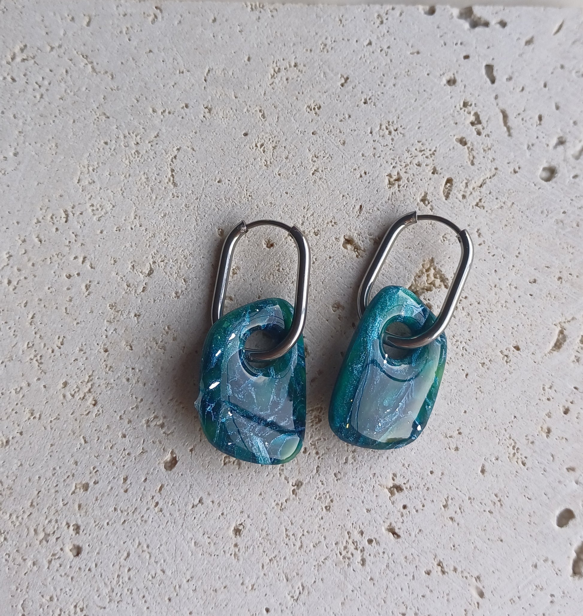Afgewerkt met een nikkelvrije hoop, de kleistukjes werden van een glanslaag voorzien.