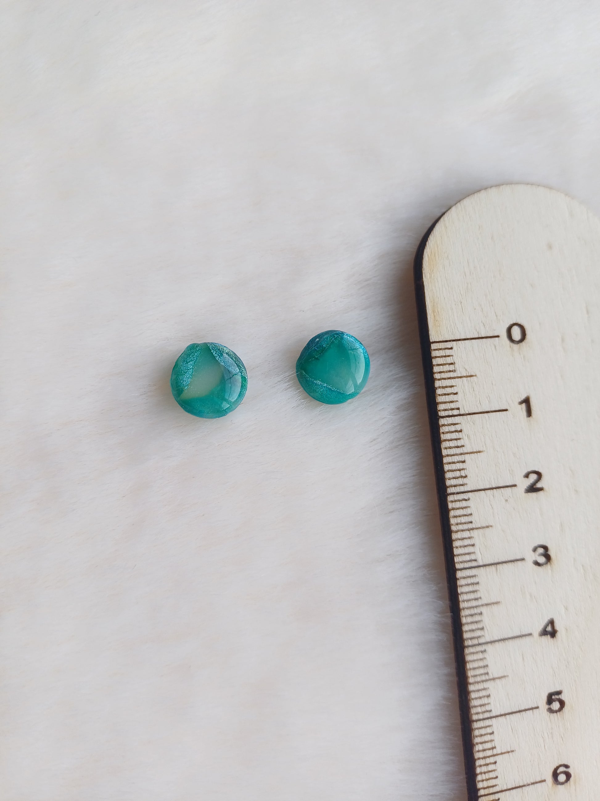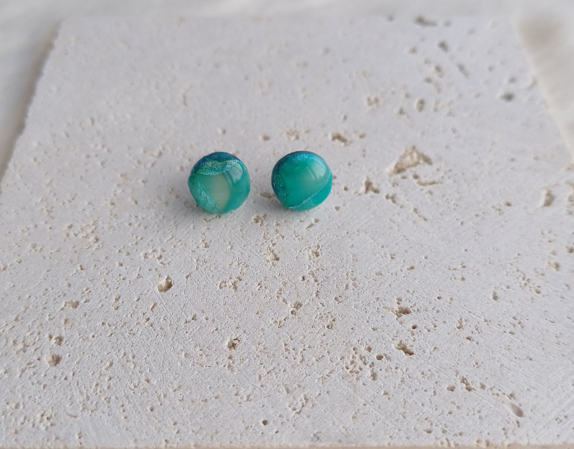 Afgewerkt met een titanium oorsteker, de kleistukjes zijn afgewerkt met een glanslaag.