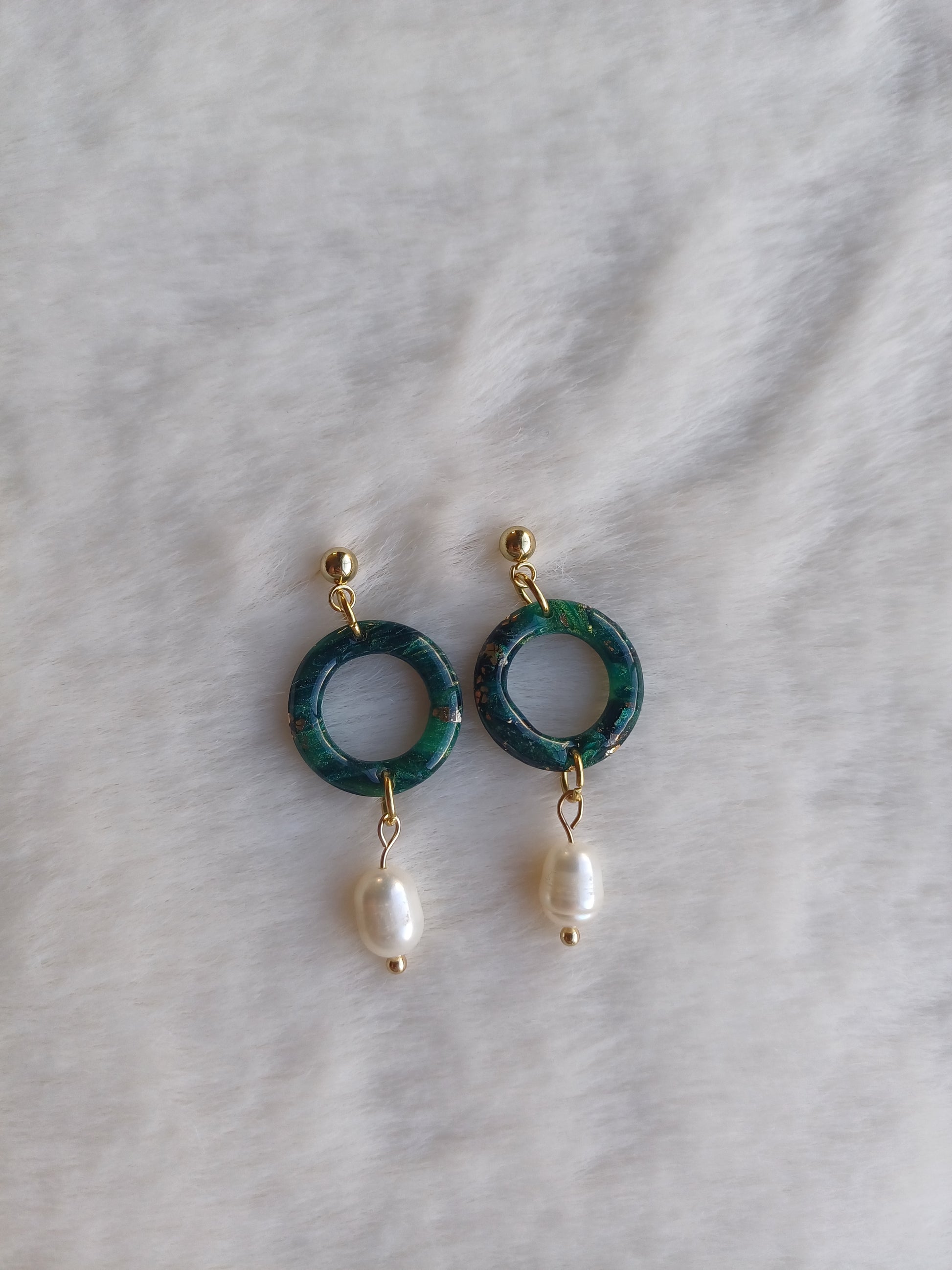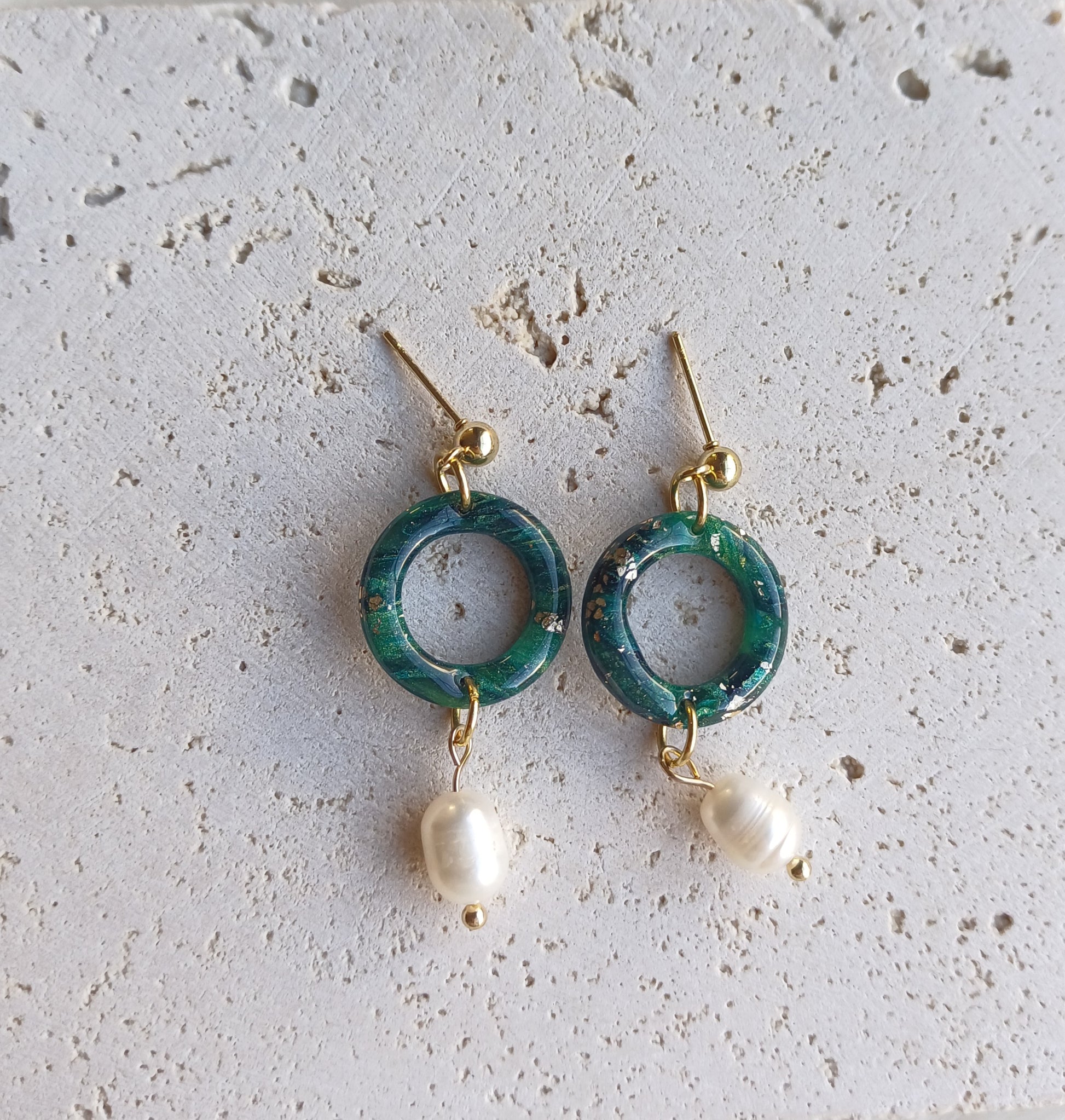 Afgewerkt met een nikkelvrije oorsteker. De kleistukjes werden voorzien van een glanslaag. Combinatie met zoetwaterparel zorgt voor een zuiverende werking van zowel lichaam als geest. Werkt in op je stress en helpt dit te doen zakken, ook helpen ze negatieve emoties te doen temperen.