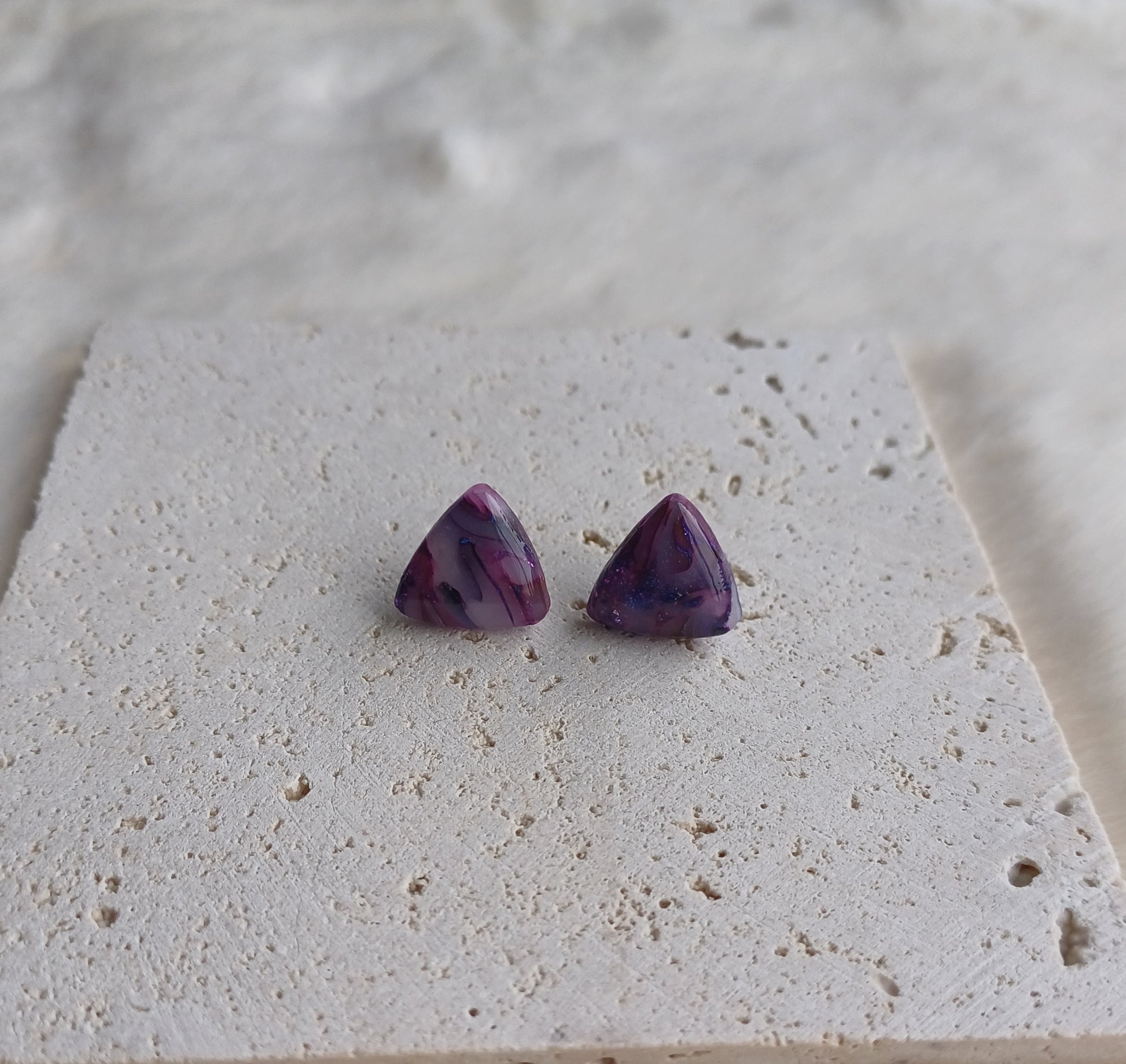 Afgewerkt met een titanium oorsteker, de kleistukjes wefden voorzien van een glanslaag.