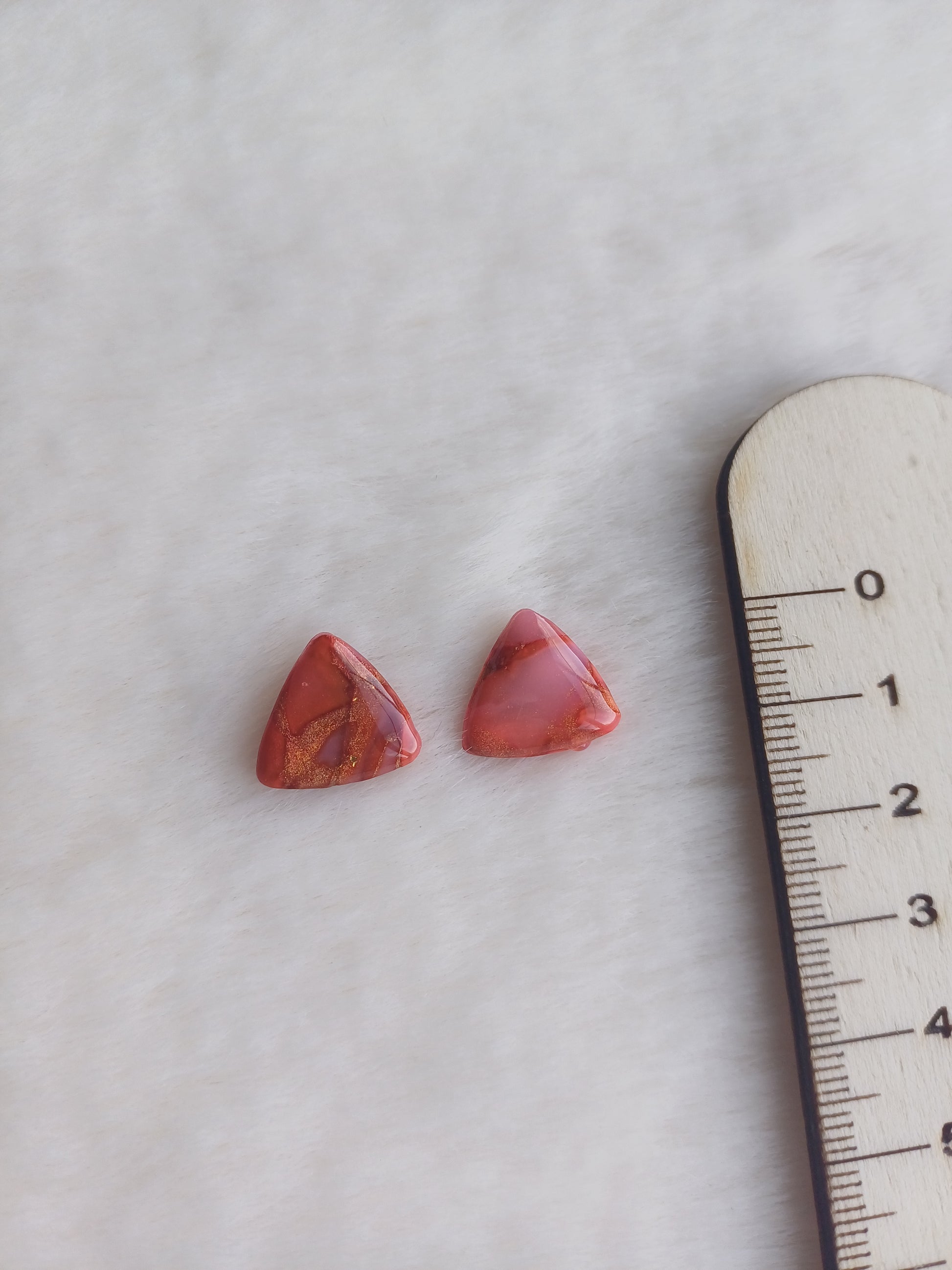 Afgewerkt met een titanium oorsteker, de kleistukjes wefden voorzien van een glanslaag.