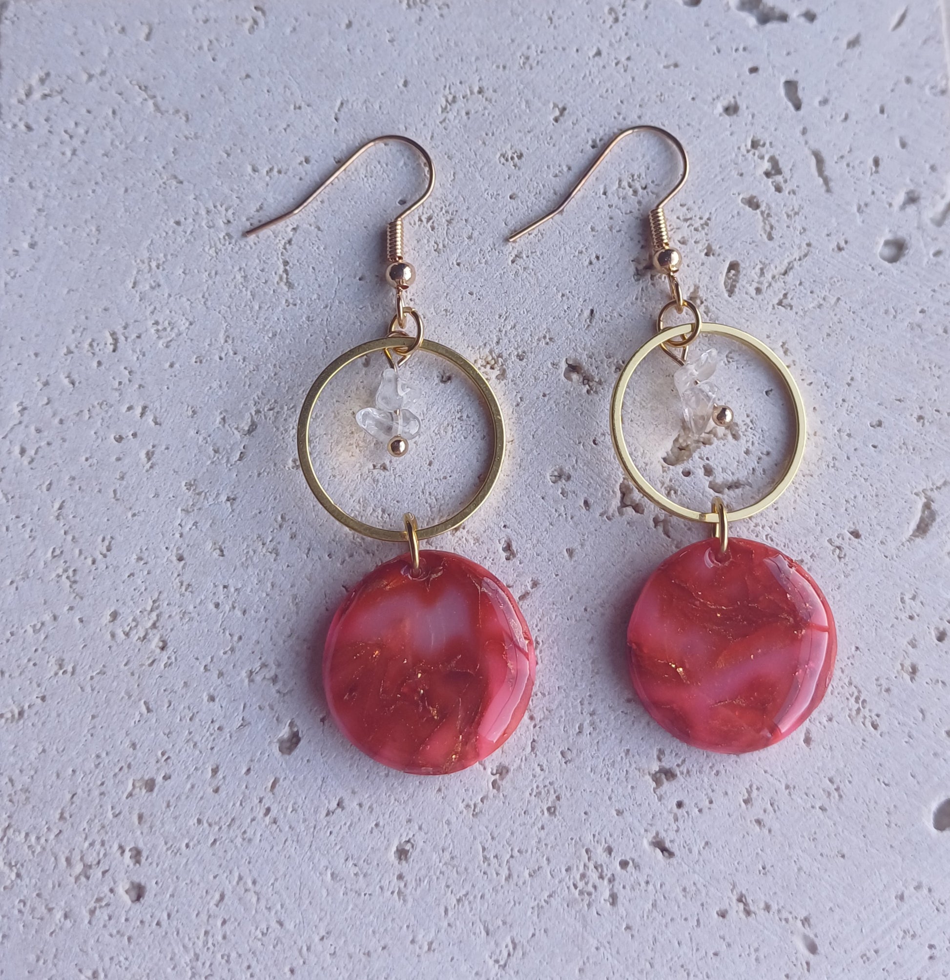Afgewerkt met een nikkelvrij haakje en een glanslaag op de kleistukjes. Er zit een bedeltje met bergkristal in verwerkt die een zuiverende werking heeft. Bergkristal zorgt voor energetische balans en helpt negatieve energie te verminderen. Werkt positief op concentratie en intuïtie.