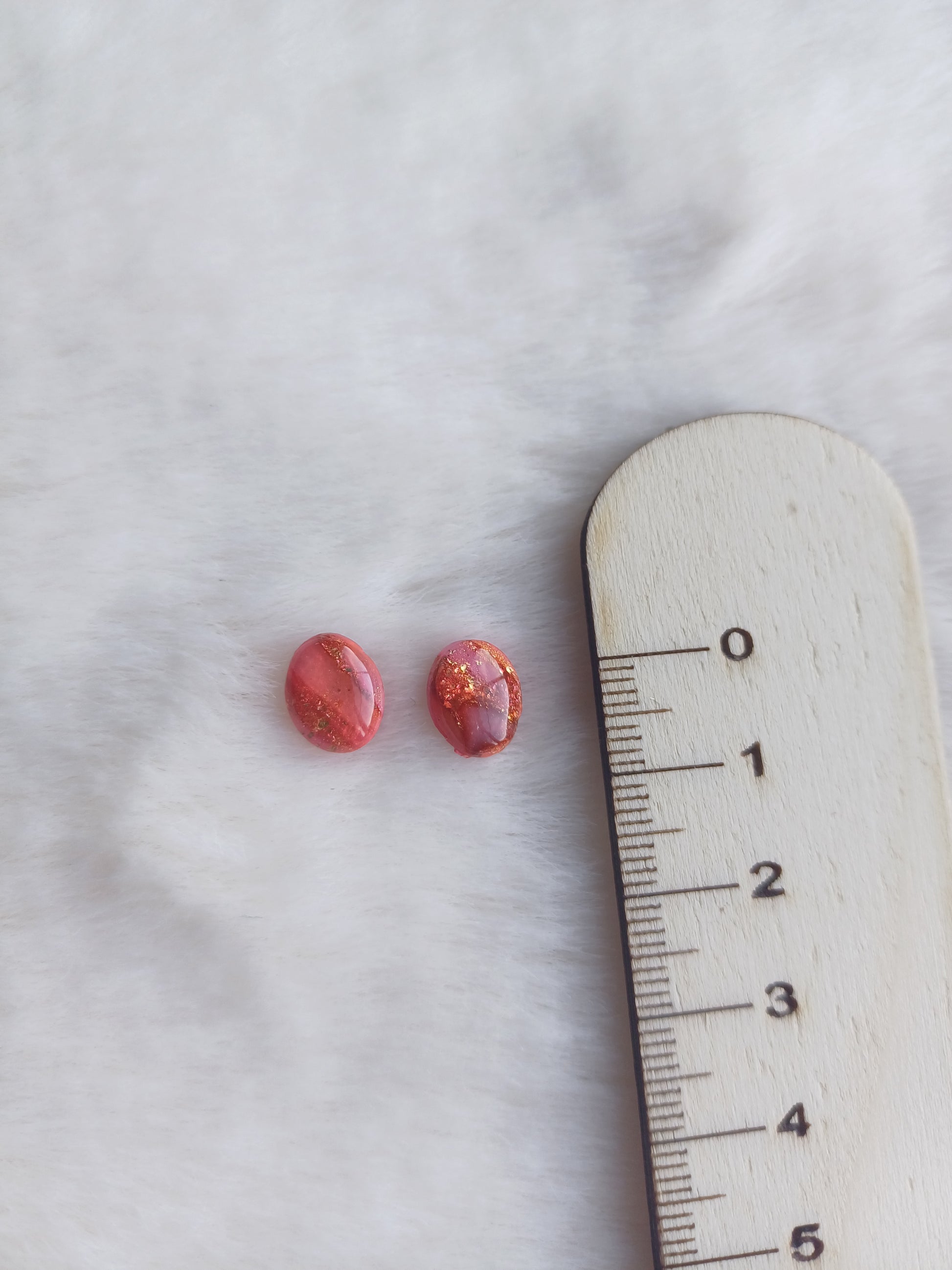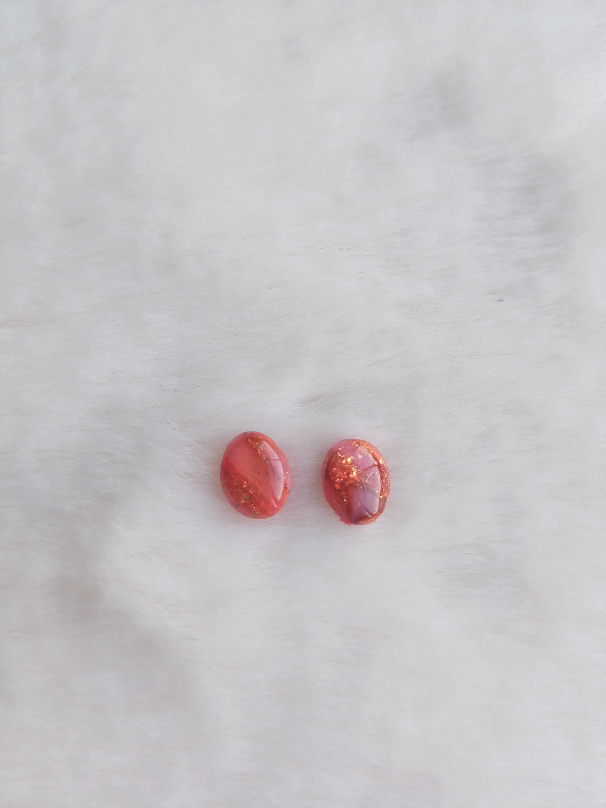 Afgewerkt met titanium oorsteker en een glanslaag op de kleistukjes.